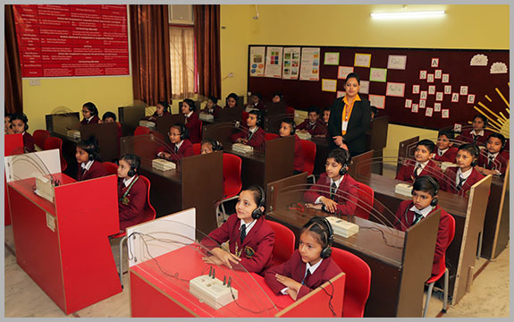 A language laboratory is a dedicated space for language learning where students access audio or audio-visual materials. They allow a teacher to listen to and manage student audio, which is delivered to individual students through headsets or in isolated sound booths KKCS has also developed a language lab where all learning activities related to Indian and foreign languages are carried out. Students are given ample opportunity to practise and perform in languages of their choices.