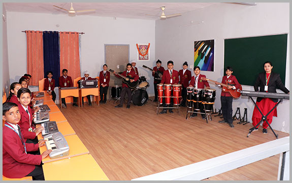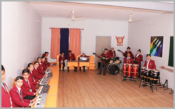To perform musical activities and to create interest for music among students , a well-equipped music lab with school drum, school band and other latest musical instruments is there.