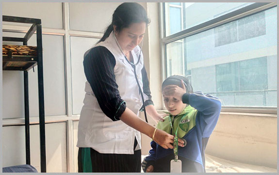First aid department with full time staff nurse and weekly round of a qualified doctor is well stocked to meet immediate medical help in case of emergency. Two medical check ups of all students from Nursery to Grade -VIII in each session is a regular phenomenon of KKCS.